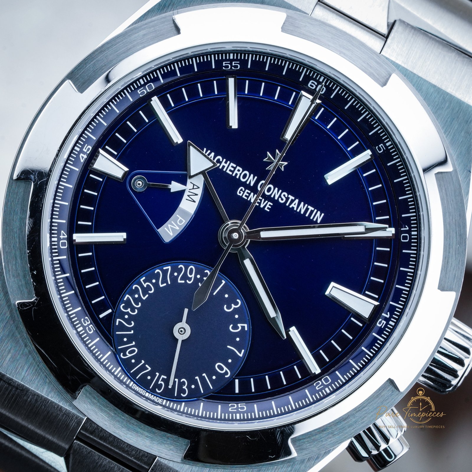 Collectors choose this reference because it balances sportiness, elegance, and practicality in a way few luxury watches can match. Furthermore, the Dual Time function makes the model highly functional for business travelers, while the refined blue dial elevates it in both casual and formal settings. Every detail—from the polished bezel to the luminous markers—demonstrates the meticulous effort behind Vacheron Constantin’s engineering.