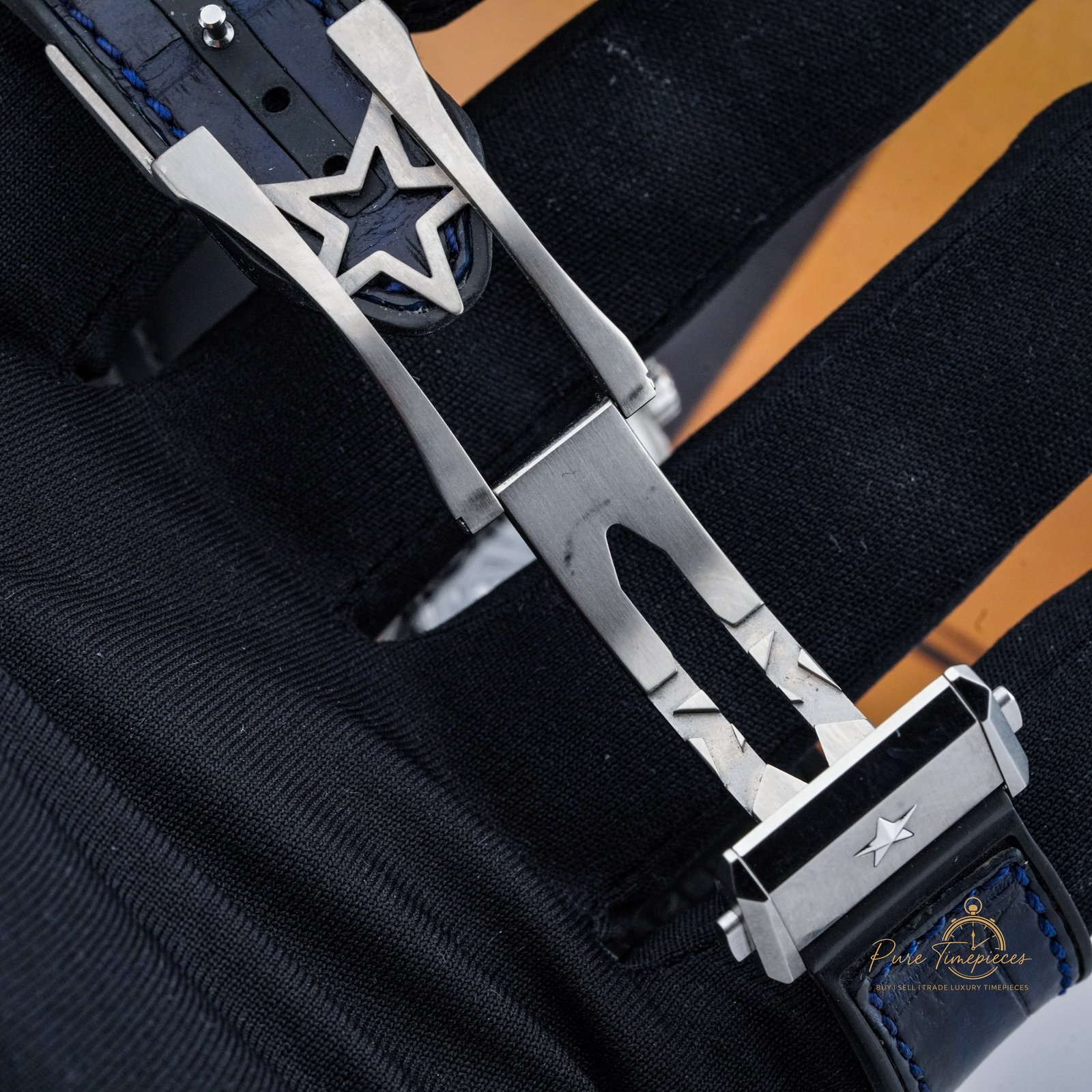 Additionally, the 41mm titanium case provides exceptional strength while remaining remarkably lightweight on the wrist. Consequently, the watch feels comfortable for everyday wear while still delivering a bold and modern presence. The brushed and polished finishing further enhances the technical aesthetic.